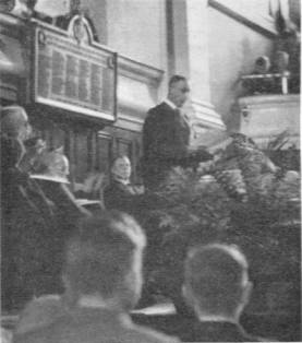 A Commemoration Service, he said, was one in which we reviewed the past to draw inspiration for the future. During the Transfiguration, Christ had shown His disciples the past symbolised by Moses and Elijah and culminating in Himself, and then turned their eyes to the future. We must look to the future and help others. An appeal to unselfish motives calls forth a greater response than one to selfish ones, as illustrated by the difference between our war-time appeals and the present one of "work or want."