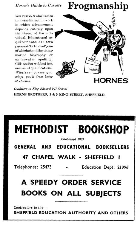 The end of the Autumn term also saw the departure of Mr. C. A. Shreeve who had come to us in a temporary capacity at the beginning of the year. We regret that his short stay with us was further curtailed by a sudden and very acute illness, but we are grateful to him for what he did to maintain interest and activity in the Art Department during the first part of the term. He goes on to a post at Firth Park Grammar School.